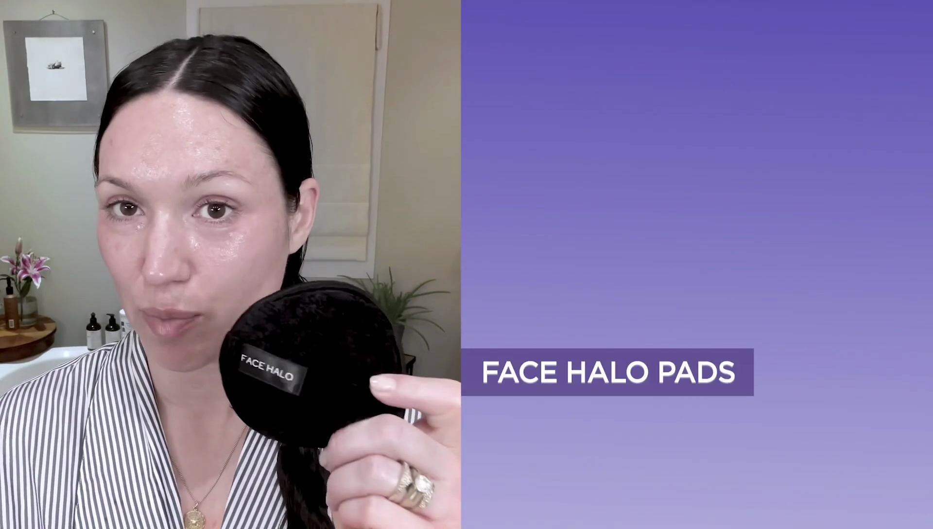 I take my Face Halo Pad, I wet the pad and use it to scrub my skin, it helps me gently exfoliate my sensitive skin, I also take the face halo pad and scrub my lips.