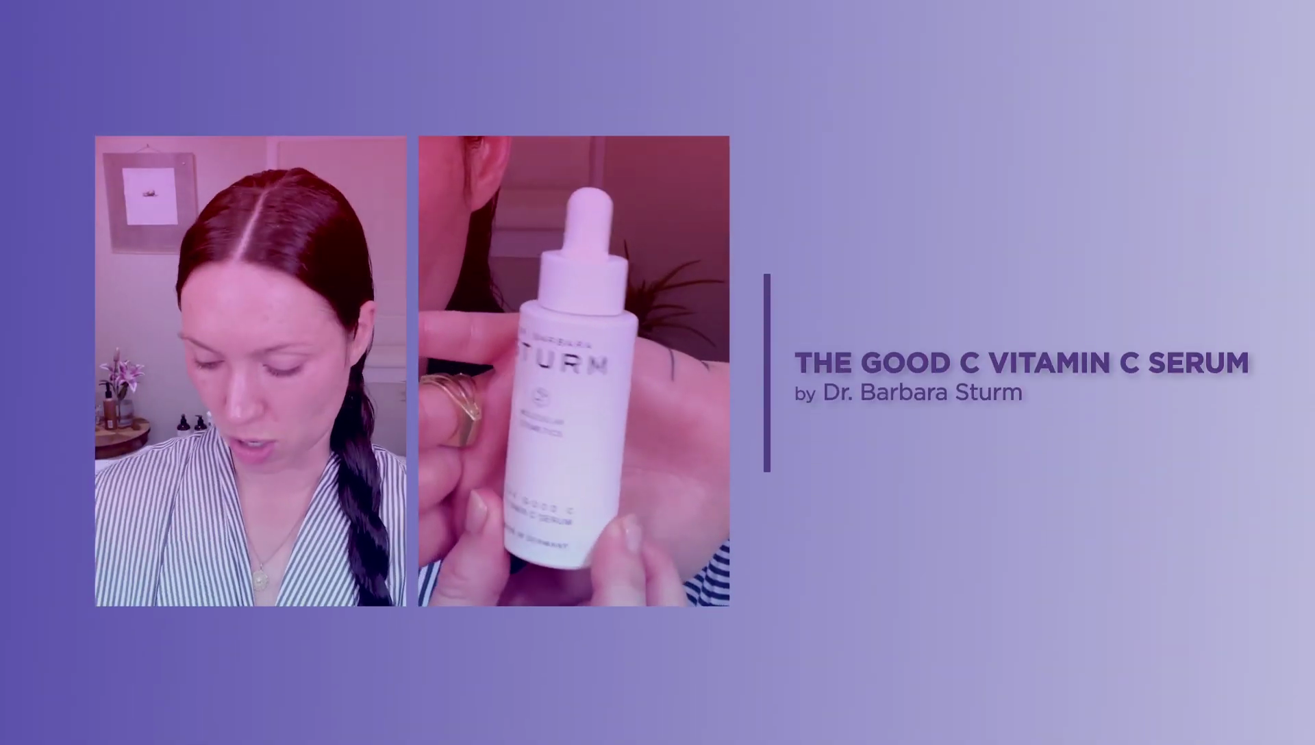 Now that I am cleansed, I apply The Good Vitamin C Serum by Dr. Barbara Sturm. This serum is a favorite of mine. It's a small molecule of vitamin c, so I know it's really going to penetrate my skin barrier.