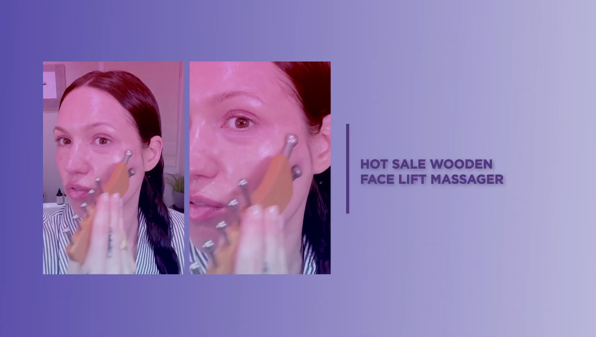 So, now that my skin has a layer of moisture on, I'm going to use this little tool - Wooden Face Lift Massager. I like to take this guy and just sort of rub it underneath my cheekbone I put more pressure under here than I do around my eye, this releases so much tension being held along your cheekbone.